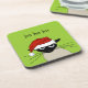 Funny Christmas Cat Coasters. Siamese cat wearing a Santa hat. "Ho Ho Ho" can be personalised with your own text. This grouchy holiday cat coaster set makes a fun Christmas gift for kitty lovers.