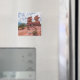 Souvenir magnet featuring a sunburst of the sun shines at the Siamese Twins in Garden of The Gods with a view of the Rocky Mountains and Pikes Peak in the background. Garden Of The Gods is a National Natural Landmark in Colorado Springs, Colorado.