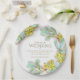 Sibbaldia procumbens wildflower botanical art wedding plates. Personalise with your own wedding ceremony date and couple to be married names. Other matching wedding items are available or can be created on request. © Original watercolor painting and design by Sarah Trett for www.mylittleedenweddings.com on Zazzle.