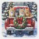 Siberian Cat Christmas Red Truck Holiday Square Sticker