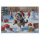 Siberian Cat Running in Snow with Christmas Hat Cutting Board