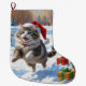 Siberian Cat Running in Snow with Christmas Hat Large Christmas Stocking