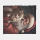 Siberian Cat With Santa Claus Festive Christmas Fleece Blanket