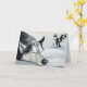 "Siberian Huskey's Penquin Dream" Dog Art Greeting Card