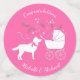 Include the big brother or sister fur baby in the celebration with this adorable Siberian Husky dog baby shower design! The pink makes it perfect for a girl baby shower! Perfect for a puppy lover with a baby on the way. The Huskie is next to an adorable vintage carriage.