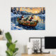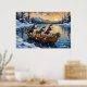 Siberian Husky Christmas Boat Holiday Poster