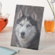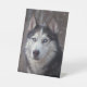 This digital painting depicts a Siberian Husky standing on snow, its fur glistening with frosty highlights as the winter landscape stretches endlessly behind it. The dog’s expressive eyes catch the viewer’s attention.