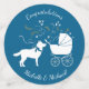 Include the big brother or sister fur baby in the celebration with this adorable Siberian Husky dog baby shower design! Perfect for a puppy lover with a baby on the way. The Huskie is next to an adorable vintage carriage. The blue makes it perfect for a boy baby shower!