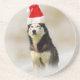 Siberian Husky Dog with Santa Hat in Snow Coaster
