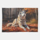 Siberian Husky in Autumn Leaves Fall Inspire Tea Towel