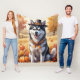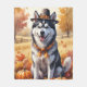 Siberian Husky In Autumn Leaves Thanksgiving Art Fleece Blanket