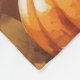 A watercolor-style painting of a cheerful dog sitting amidst a pile of vibrant fall leaves, surrounded by tiny pumpkins and scattered acorns. The dog wears a little pilgrim hat and beams with joy, capturing the spirit of Thanksgiving. In the background, soft harvest fields and golden-hued trees create a peaceful countryside ambiance. Gentle textures and warm, muted autumn tones give the scene a cosy, nostalgic feel perfect for celebrating the beauty of the season.