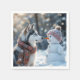 Siberian Husky Looking At a Snowman Napkin