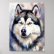 Siberian Husky Portrait Watercolor Fine Art - Blue Poster