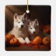 Siberian Husky Puppy Autumn Delight Pumpkin Ceramic Ornament