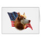 USA! America! Shout your pride with this awesome flag Patriotic background with this AKC dog breed Siberian Husky in the forefront. Show your pride with this design on a t-shirt, mug, and much, much more!
