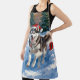 Siberian Husky Running in Snow with Christmas Hat Apron