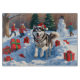 Siberian Husky Running in Snow with Christmas Hat Cutting Board