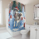 Siberian Husky Running in Snow with Christmas Hat Shower Curtain