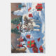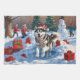 Siberian Husky Running in Snow with Christmas Hat Tea Towel