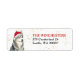 The left side of these return address labels features a beautiful Husky Dog wearing a red and white Santa Claus hat. Gold confetti gives interest to the background. Your custom text is in red and black at the right.