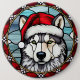 Siberian Husky Stained Glass Christmas 6 Cm Round Badge