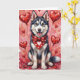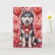 Siberian Husky Valentine Dog Sitting with Hearts Card