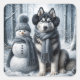 Siberian Husky With Snowman Square Sticker