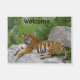 Portrait photo of a Siberian Tiger sunning himself on a rock. Siberian tigers are endangered.