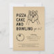 Sibling Bowling Party Invitation - "Pizza. Cake. And Bowling." Highlight the important stuff for your siblings' birthday party. Hand drawn graphics in a fun design. Cool enough for your teenager and still appropriate for a young boy or girl.