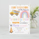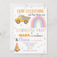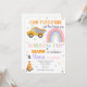 Rainbow of fun and construction trucks boy and girl birthday invitation.