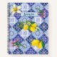Sicilian blue Mediterranean citrus ceramic tiles Notebook. An exquisite floral botanical citrus garden pattern inspired by the summer bright italian themed art of majolica Sicilian ceramic tiles in blue yellow colours. click the "customise further" link and use the design tool to modify the design if you like or customise it over another product of your choice. Whether for valentines day, Christmas or as any occasion it will make a perfect gift.
