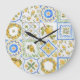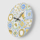 Sicilian Lemons Watercolor Square Pattern Large Clock
