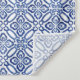 Fabric backdrop with a vintage mediterranean tile pattern in classic blue and white.