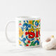 I like to buy and review my own work to ensure you get an outstanding product and I’m happy to give the Primary Colours Beach Football Mug 5 stars because it meets my expectations completely. Pleased with it I am. Zazzle mugs are well fabricated, microwave and dishwasher safe. And this yellow red and blue panoramic wraparound motif is sealed with a durable and sparkling Orca polished gloss glaze finish. It’ll never rub off! The size and energy of two jostling figures and a burly goal keeper fit the mug's circular shape well. There's momentum in the carousel effect as the two jostling figures repeat and move right around the mug and meet a burly goal keeper. Big sharp original images precisely drawn and delicately captured in blue and red with plenty of bright yellow! An ideal gift for anyone who plays ball! A fun gift for all beachball and football fans. A pair with the Retro Grey-Grain Beachball Player Mug. Available in two sizes and several styles including Black Ringer, Travelling, and Stern. Go have a peek!