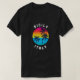 I give wanted to give this a 4 instead of a 5 because these Basic DARK T0shirts run unexpectedly SLIM or Narrow. Which is great if you do not have a potbelly, but I have a paunch. It isn't the shirt's fault that I've got a beer belly. The design and shirt itself is a quality cotton shirt. The color is more of a deep purple, but still a very pretty color. The Basic DARK T-shirts run a bit SLIMMER than the Basic Ts. The neck is a fraction narrower (or seems to be narrower) also. I'm a paunchy middle-aged woman and my neck is 12 inches (31cm) thick and the neckline fell about the same as in the photo of the man, and I had the desire to tug it a bit. So if you're a thick necked man or like loose shirts, be aware these are slimmer shirts. Once I get rid of my lockdown paunch it'll look great. The shirt washed well in cold water with no apparent bleeding. We don't have a dryer, so it hung dry. Did not shrink. Love the colors and the design. The design looks smaller on my shirt than it does on the model on-line. But still, it looks good on the shirt. The printing looks as it does on the model, just the size seems fractionally smaller. Washed garment in cold water, hung dry and design appeared unaffected.