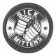 Circle design with a pair of ice hockey gloves and the text SICK MITTENS, which is a cool hockey term for a player who has great hands! .