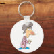 A sick woman in her dressing gown with a red nose. This design looks really effective on these Keychain