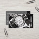 A horizontal business card template with a black side banded layout. Attractive image on the front. Company name in rotated text on the front and back with all other contact details on the back. The photo or image on the front can also be changed. The design also allows scope for additional customisation.