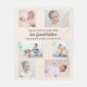 Cream-coloured 6 grandchildren photo collage fleece blanket for grandparents. Text says, "Side by side or miles apart, our grandchildren are always close to our heart."