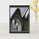 A vintage car shows off its chrome wheels and side exhaust.