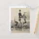 Taken from an old postcard from the late 1800s is this reproduction of a lady in a long black riding habit and top hat sitting sidesaddle on a pretty grey horse.