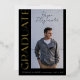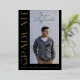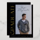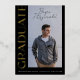 Celebrate the milestone of graduation with our sophisticated and elegant Graduation Announcement Card. This striking card features a timeless black background that perfectly complements a single, portrait-orientated photo of the graduate. Alongside the photo, the word "GRADUATE" is emblazoned in luxurious real gold foil, presented in a bold, modern font that adds a touch of contemporary class.