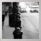 Posts holding chain to separate people from traffic. Narrow depth of field focused only on one pole nicely blurs people and traffic