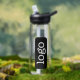 Sideways Business Logo Branding - QR Code - Text Water Bottle