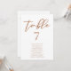 This sienna brown wedding table number card with numbers is a warm regal colour for a bride or groom looking for a blend between soft and masculine. The custom tan minimalist script features simple cursive typography along with a chic, modern serif font. This soft brown is perfect for a fall afternoon event.