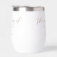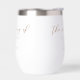 This sienna brown script wedding wine tumbler is a warm regal colour for a bride or groom looking for a blend between soft and masculine. The lovely tan minimalist typography features simple cursive above a chic, modern serif font. This flexible gift works for both afternoon and evening weddings.