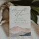 Celebrate the night before with this stunning rehearsal dinner invitation from the Sierra Dusk collection by Redwood & Vine Design Co. A watercolor mountain landscape in soft blush, peach, and slate sets a serene and romantic tone, inspired by desert sunsets and southwest charm. The modern script and serif fonts elevate the design with rustic elegance—perfect for couples hosting a warm, nature-inspired gathering.
