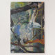This design features a painting by the French artist Henri Manguin (1874–1949), who was associated with the Fauvist art movement. It depicts the artist's wife Jeanne, who served as a frequent model for his paintings. She is reclined on wooden chair under the shade of tree in a Mediterranean garden. In the distance can be seen the houses of a seaside village, beside the water. The woman is relaxed in her posture and she appears at peace as she sleeps; she is facing towards the viewer. Her eyes are closed and her legs are crossed. She is taking a rest from the midday sun, enjoying a typical European siesta. The setting around her is flooded with Mediterranean light; the location is southern France. Jeanne can be seen as a symbol of repose, femininity and the pleasures of a leisurely home life. The painting offers a meditation on comfort and ease; it celebrates the simple joys of ordinary life. The original artwork was painted in the same year as the 1905 Salon d’Automne, where Fauvism first erupted into public consciousness.