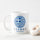 Sifnos, Greece coffee mug featuring the national flag of Greece inside a Greek blue Aztec circle. This mug is perfect for you to enjoy drinking your coffee while you are on vacation in Sifnos, Greece or if you are proud to be from Sifnos.